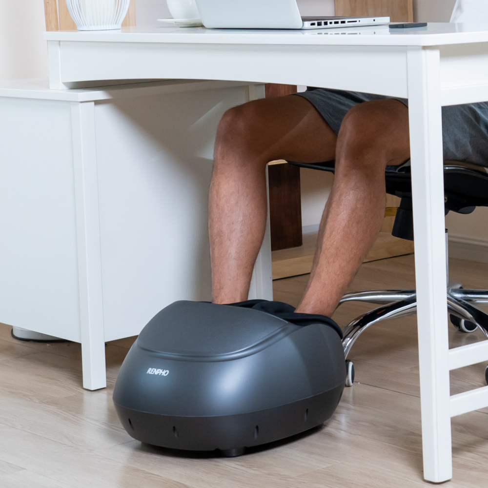 Massieren Sie Ihre Füße und entspannen Sie Ihren ganzen Körper mit dem Shiatsu-Fußmassagegerät Premium nach einem langen Tag im Büro oder in der Stadt. Genießen Sie eine tiefe, knetende Fußmassage zur Entspannung Ihres Körpers.