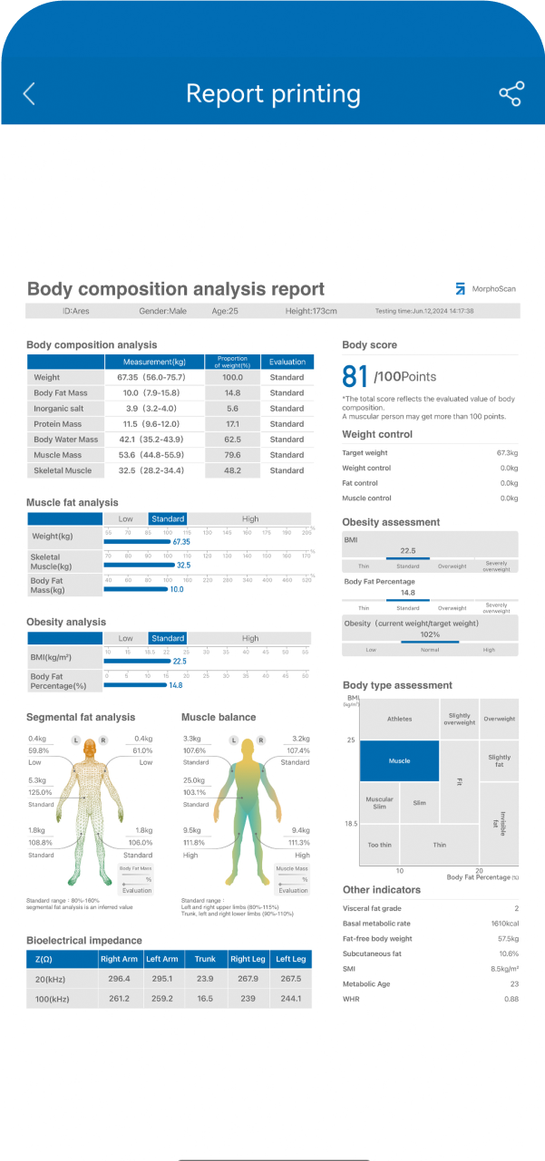 Using low-frequency (20kHz) and high-frequency (100kHz) readings, the MorphoScan builds the clearest picture of your body composition you have seen yet.