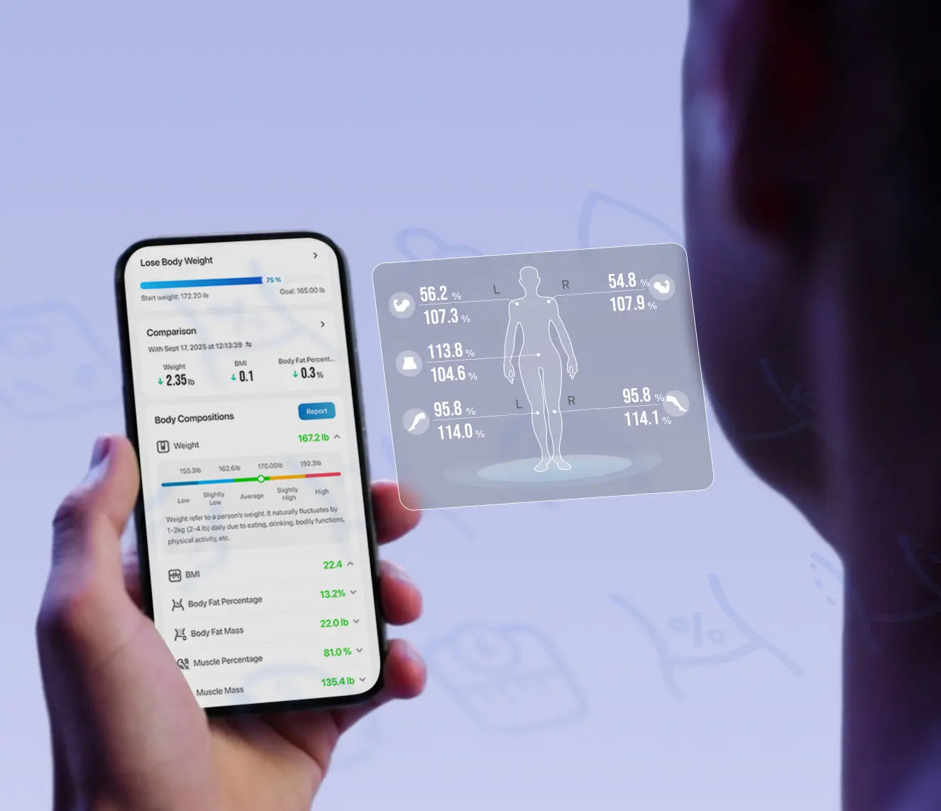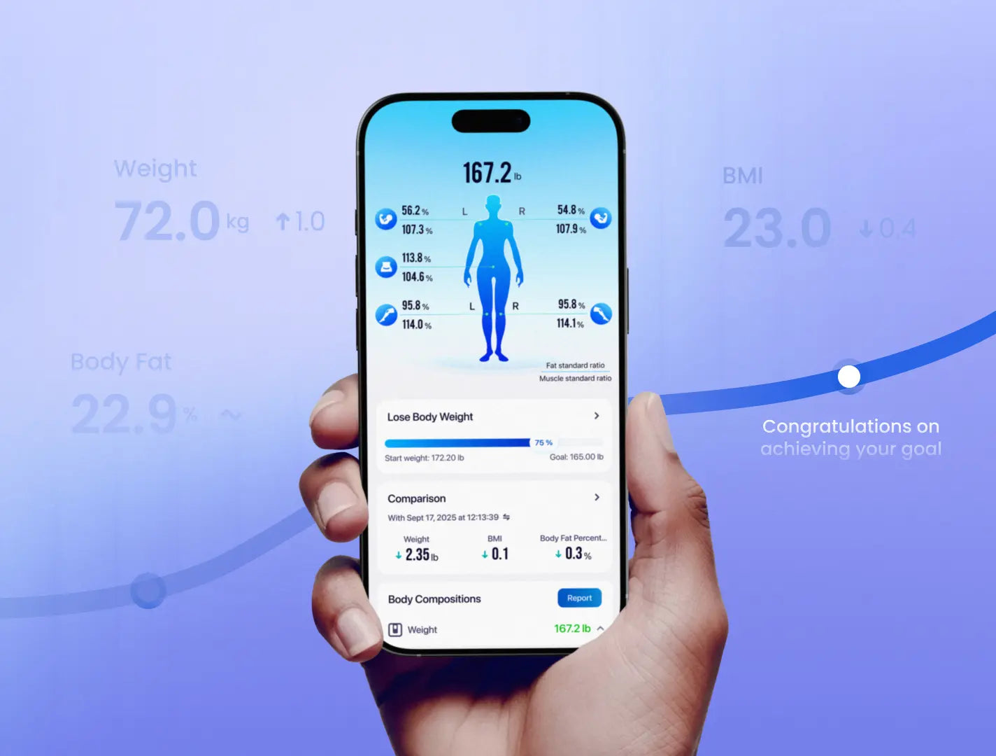 Unlock deeper insights into your health journey—all within one intuitive app. Track over 50 body composition metrics, monitor trends in real time, and stay motivated with personalized goals and visual reports.